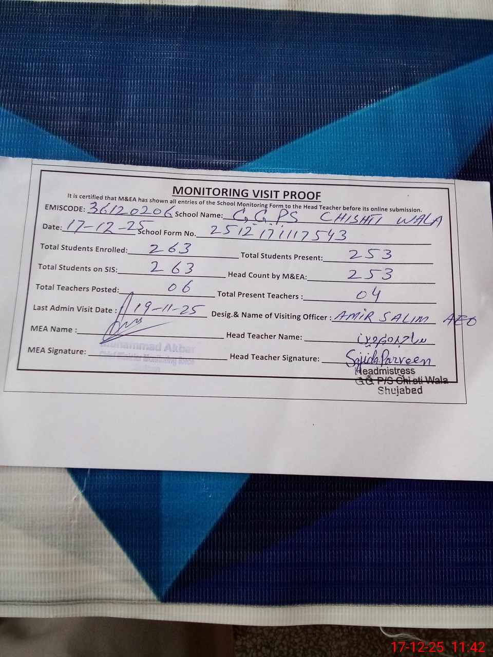 | EMIS Code: 36120206 | Name of School: GGPS CHISHTI WALA SHUJABAD | |||