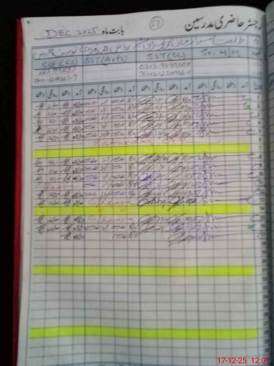 | CNIC | Full Name | Designation | R/C | Absence During Last Calender Month |