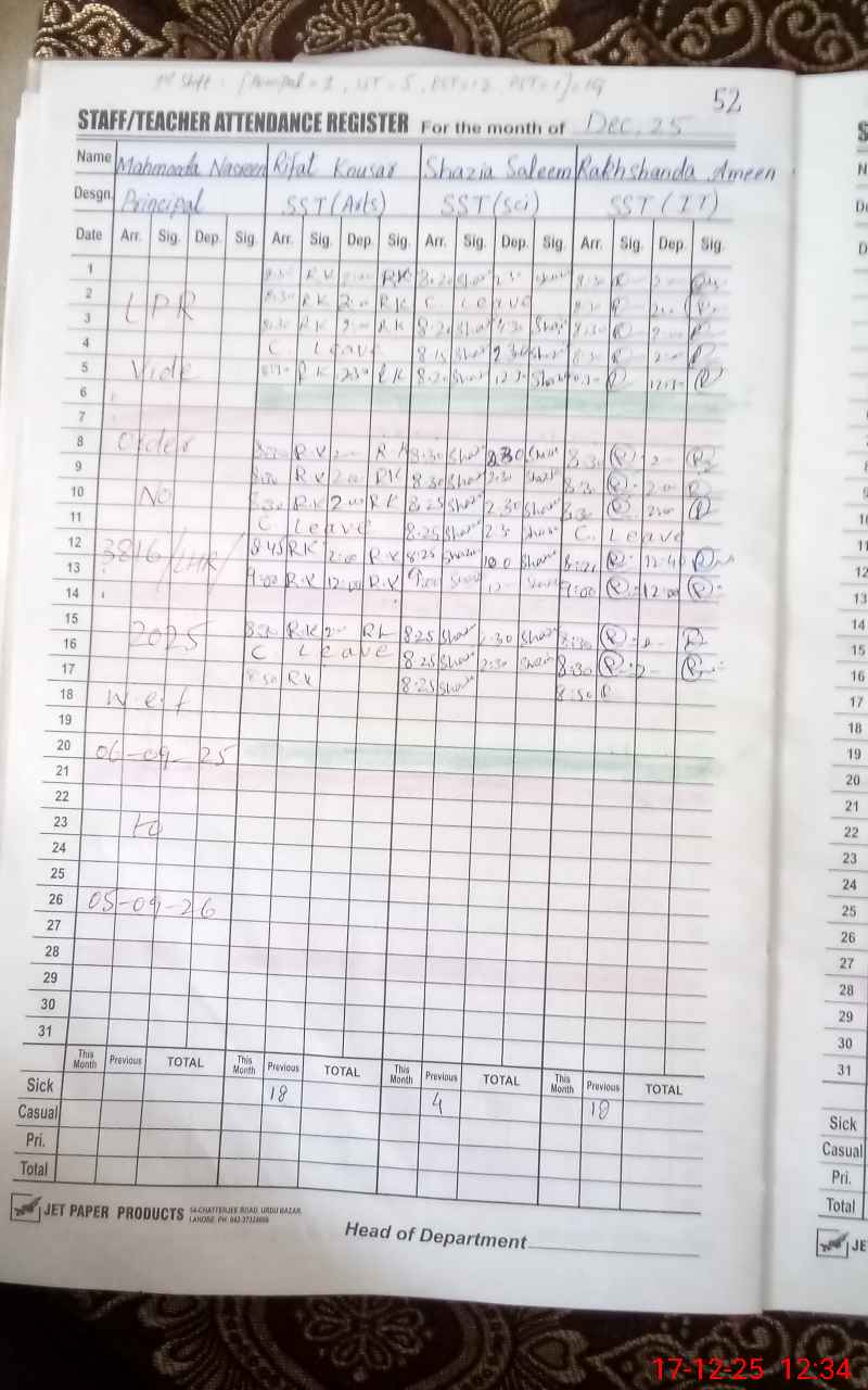 | 33**** | Ma**** Na**** | PRINCIPAL | Regular | 0 | 0 | 0 | 0 | 0 | 0 | 0 | 0 | 0 | |