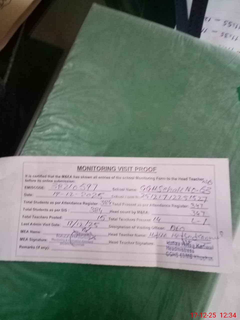 | Remarks (Use Separate Page if Required): sis 384 DEO visted 17-12-2025 | |||||