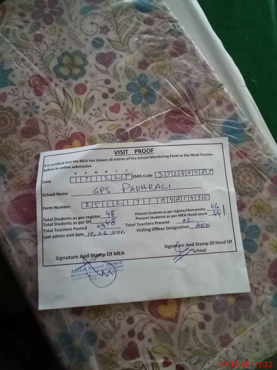 | EMIS Code: 37240485 | Name of School: GPS PADHRALI | |||