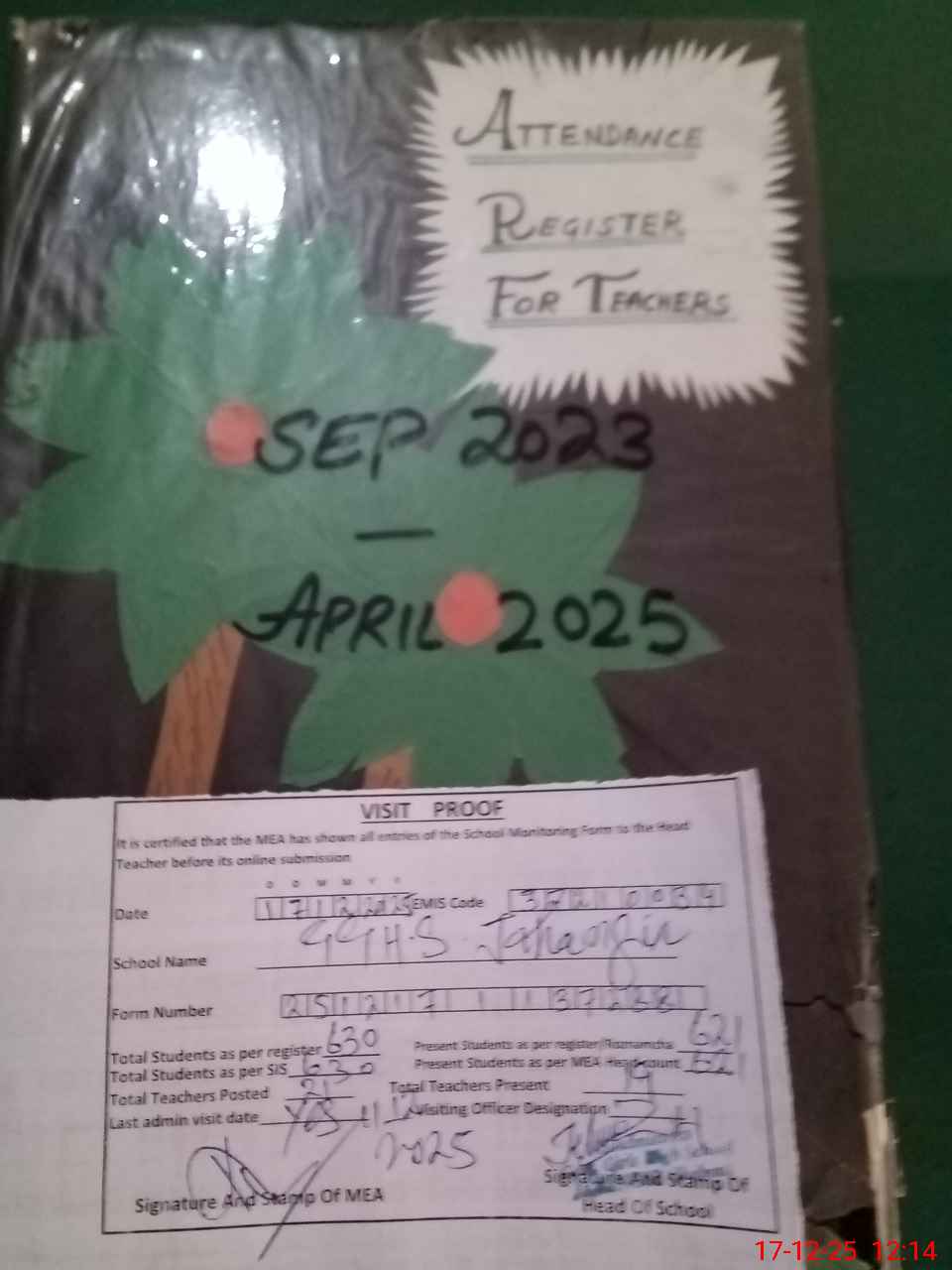 | Attendance Register | Head Teacher | MEA with School | Visit Proof |
