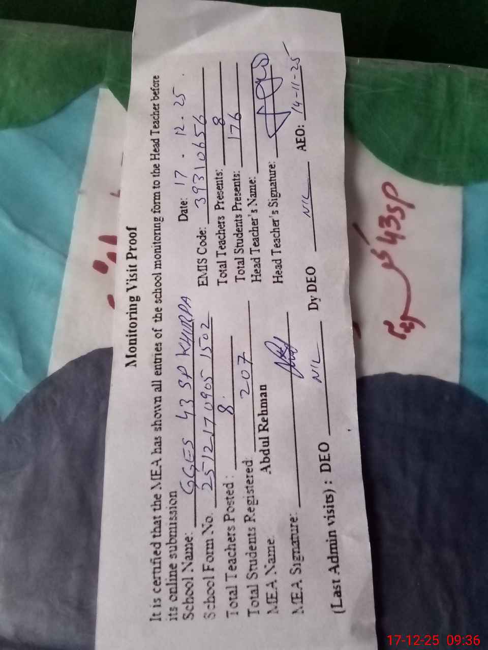 | EMIS Code: 39310656 | Name of School: GGES 43/SP KHURPA | |||