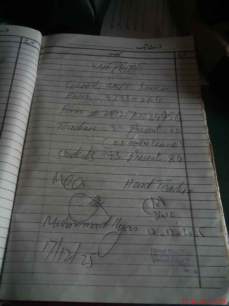 | Attendance Register | Head Teacher | MEA with School | Visit Proof |