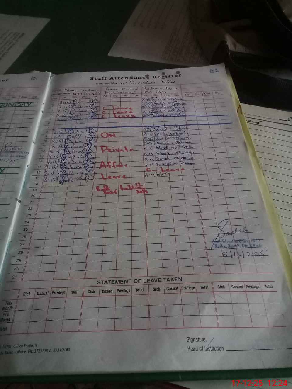 | Name: Na**** Kh**** Designation: (School Headmaster's/Headmistress's) PST Phone/Cell Number: 03**** |