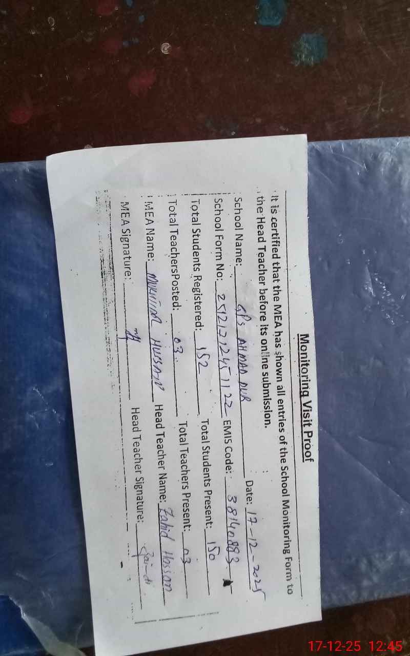 | EMIS Code: 38140883 | Name of School: GPS AHMAD DUB | |||