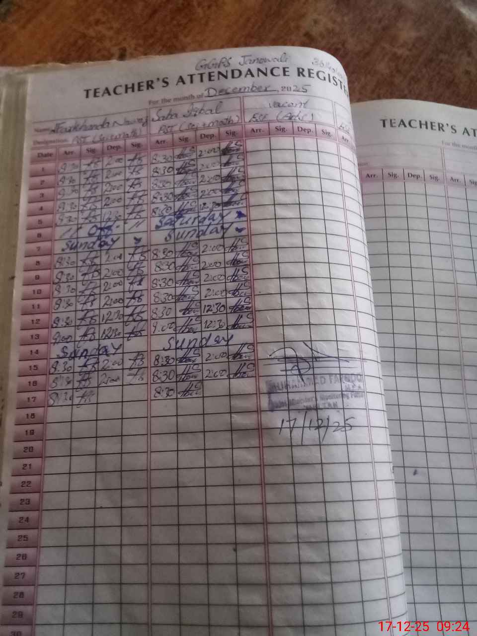 | Monitoring Date: 17-12-2025 | Start Time: 17-12-2025 09:01 AM | End Time: 17-12-2025 09:31 AM | Name of MEA: MU**** FA**** | |