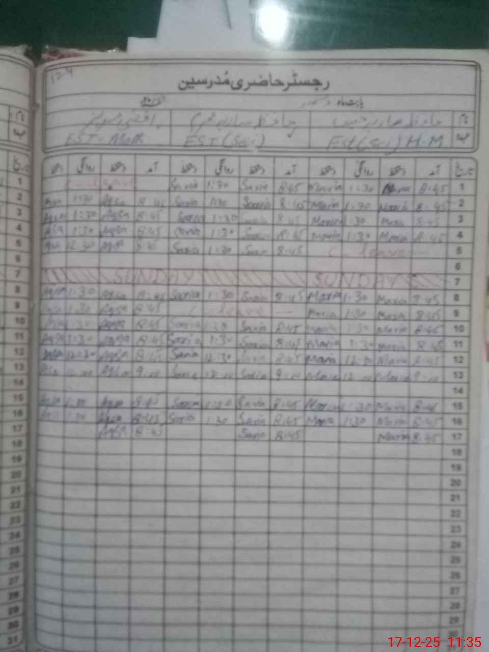 | 33**** | Ir**** Sh**** | PST Science/Maths | Regular | 27 | 0 | 0 | 25 | 0 | 0 | 0 | 0 | 2 | Maternity |