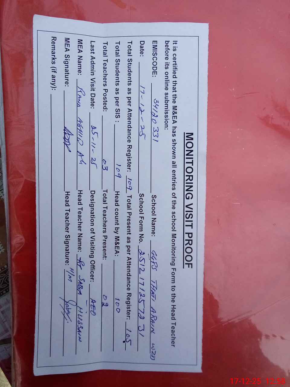 | EMIS Code: 34120331 | Name of School: GGPS THATHI ARAIAN | |||