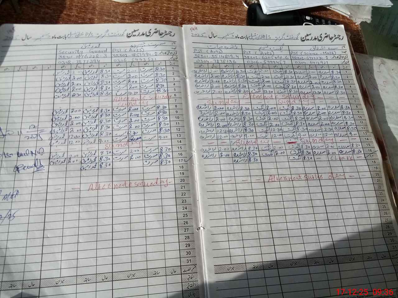 | CNIC | Full Name | Designation | R/C | Absence During Last Calender Month |
