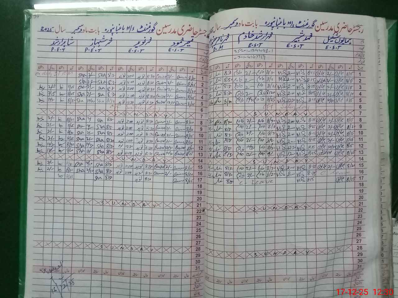 | 35**** | Mu**** Ar**** Kh**** | EST Oriental | Regular | 0 | 18 | 0 | 0 | 0 | 0 | 0 | 0 | 0 | Casual |