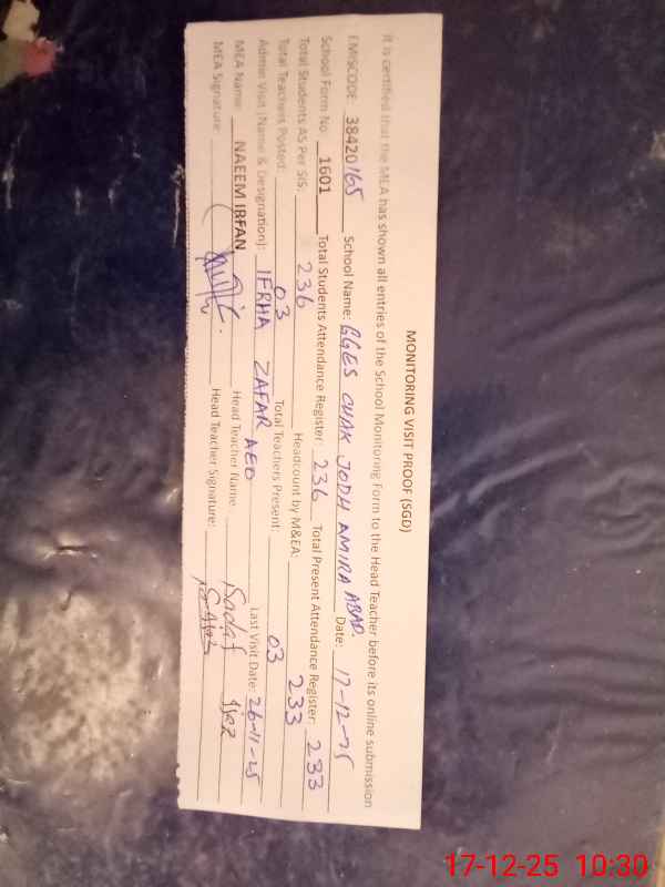 | EMIS Code: 38420165 | Name of School: GGES DAKHLI CHAK JODH AMIRA ABAD SARGODHA | |||