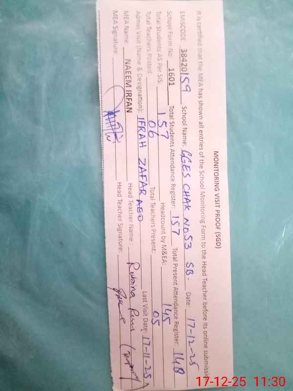 | EMIS Code: 38420159 | Name of School: GGES CHAK NO.53 SB | |||