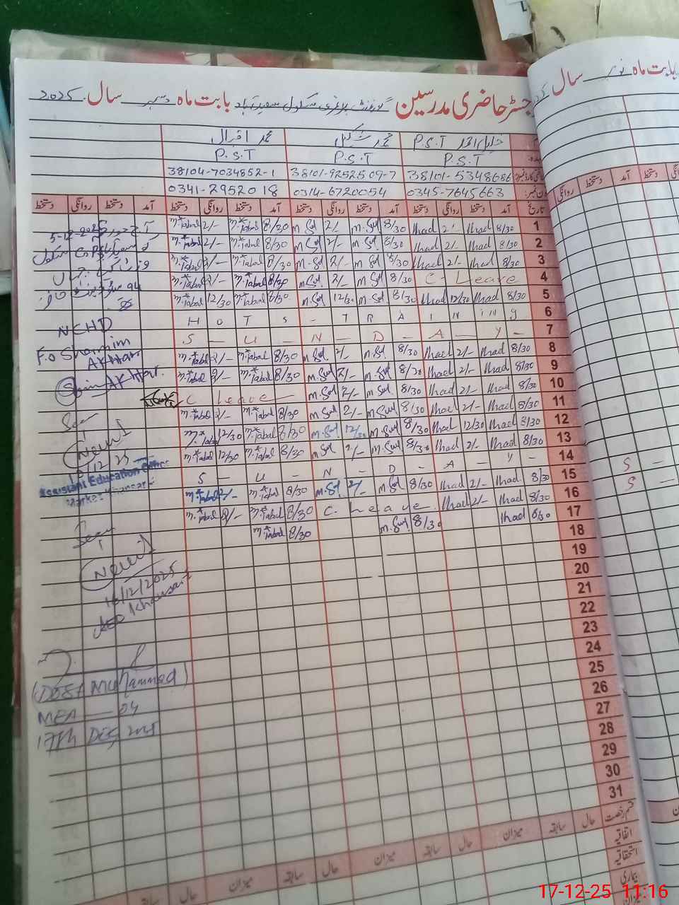 | Remarks (Use Separate Page if Required): All the entered data loudly share with the head teacher before submitting Last visited the subject school by educational authority Naeem Abbas AEO Dated 16th November 2025 | |||||