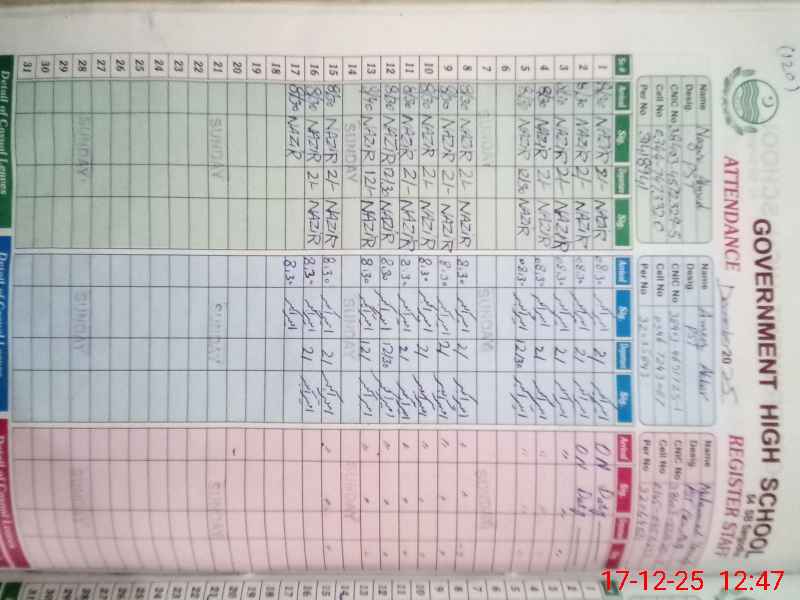 | CNIC | Full Name | Designation | R/C | Absence During Last Calender Month |