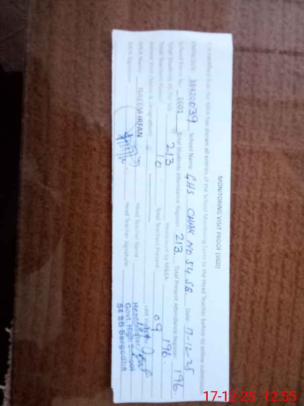 | EMIS Code: 38420039 | Name of School: GHS CHAK NO.54 SB SGD | |||