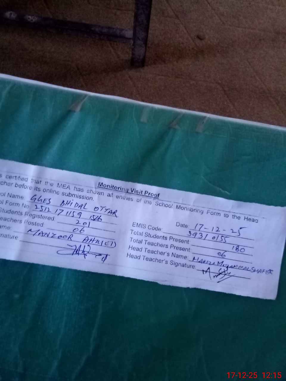 | EMIS Code: 39310155 | Name of School: GGES BHIDAL OTTAR | |||