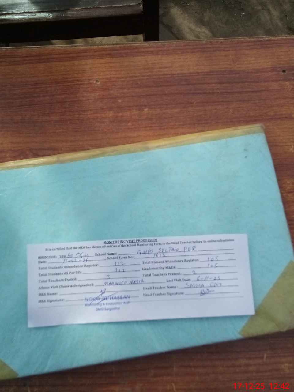 | EMIS Code: 38460554 | Name of School: GMPS SULTAN PUR | |||