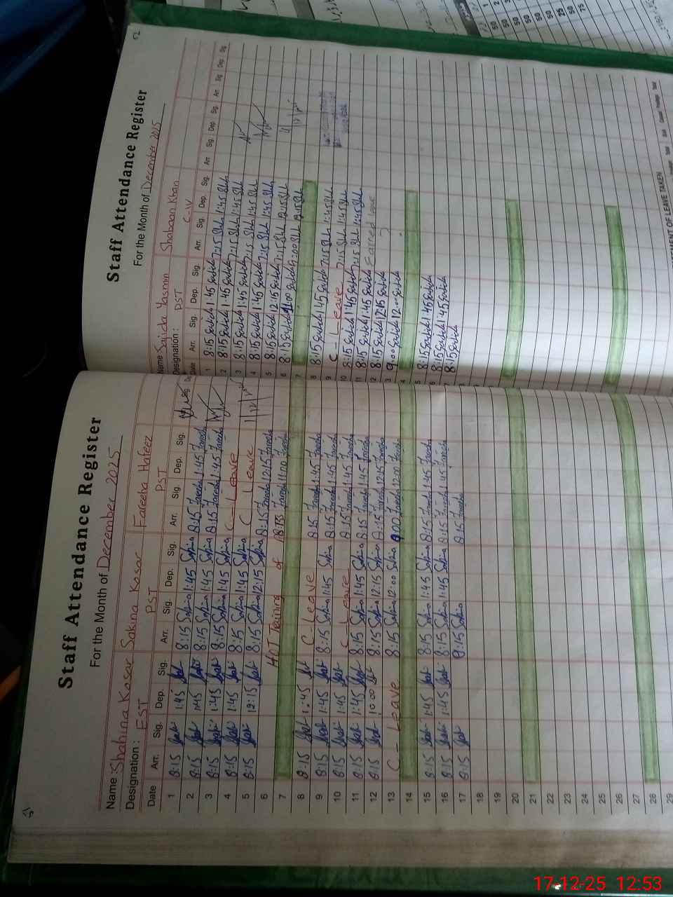 | CNIC | Full Name | Designation | R/C | Absence During Last Calender Month |