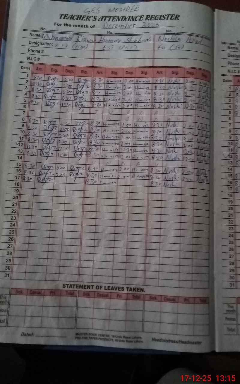 | Name: Mu**** Ri**** Designation: (School Headmaster's/Headmistress's) SST (Arts) Phone/Cell Number: 03**** |