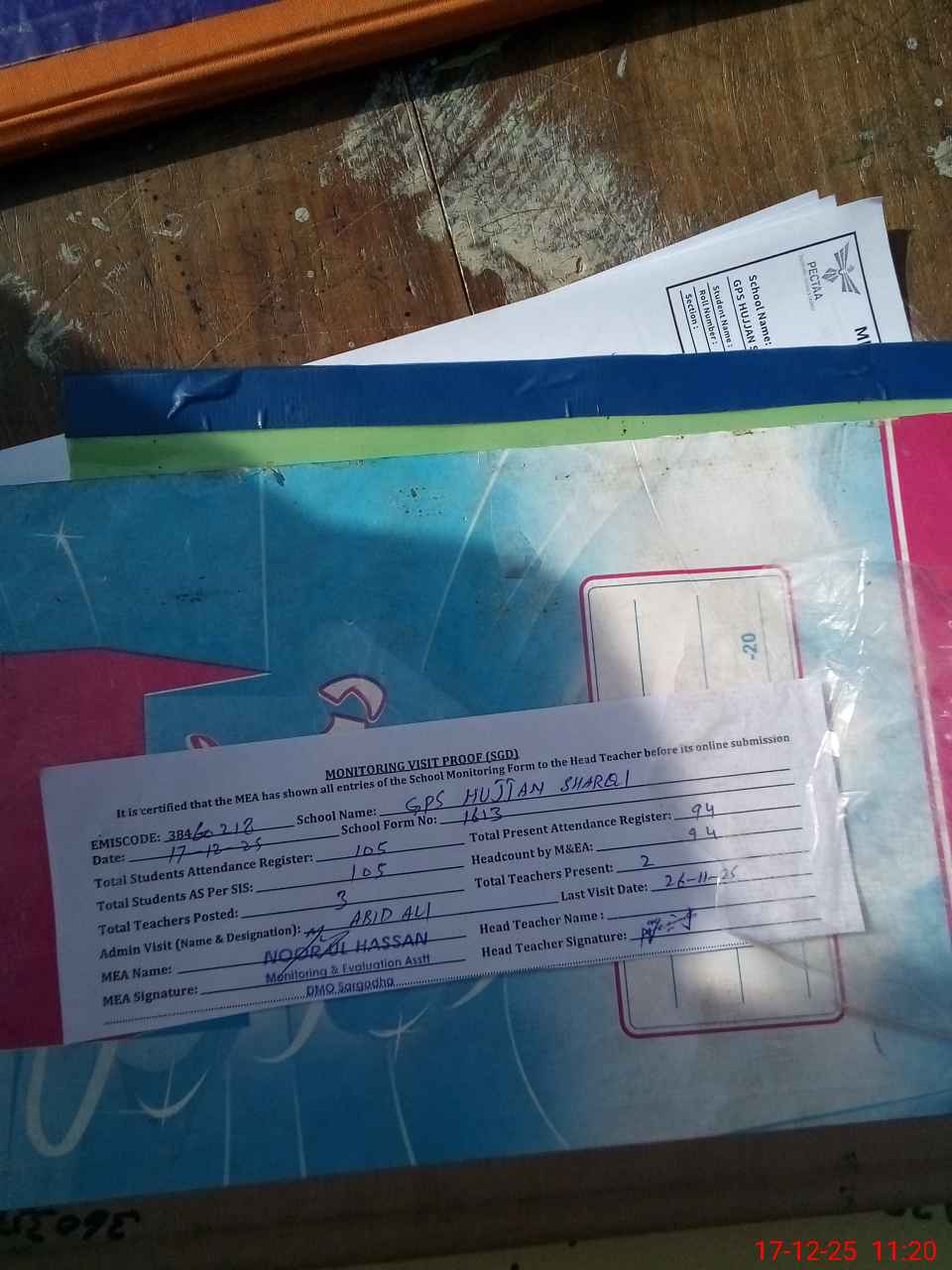 | Attendance Register | Head Teacher | MEA with School | Visit Proof |