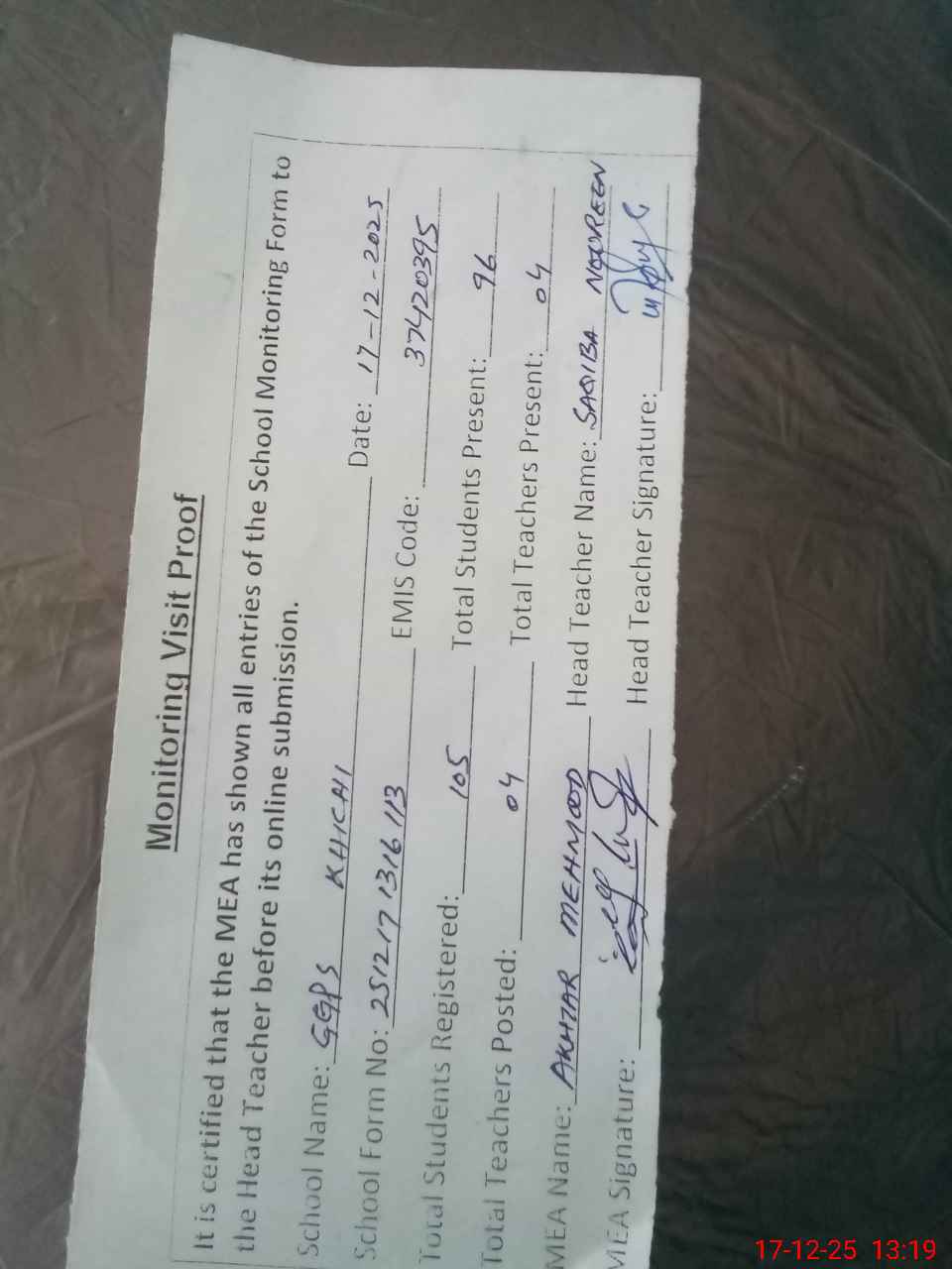 | EMIS Code: 37420395 | Name of School: GGPS KHICHI P/O JHATTLA | |||