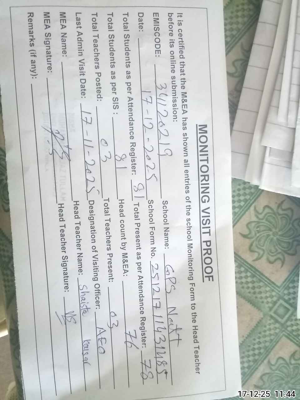 | EMIS Code: 34120219 | Name of School: GPS NATT | |||