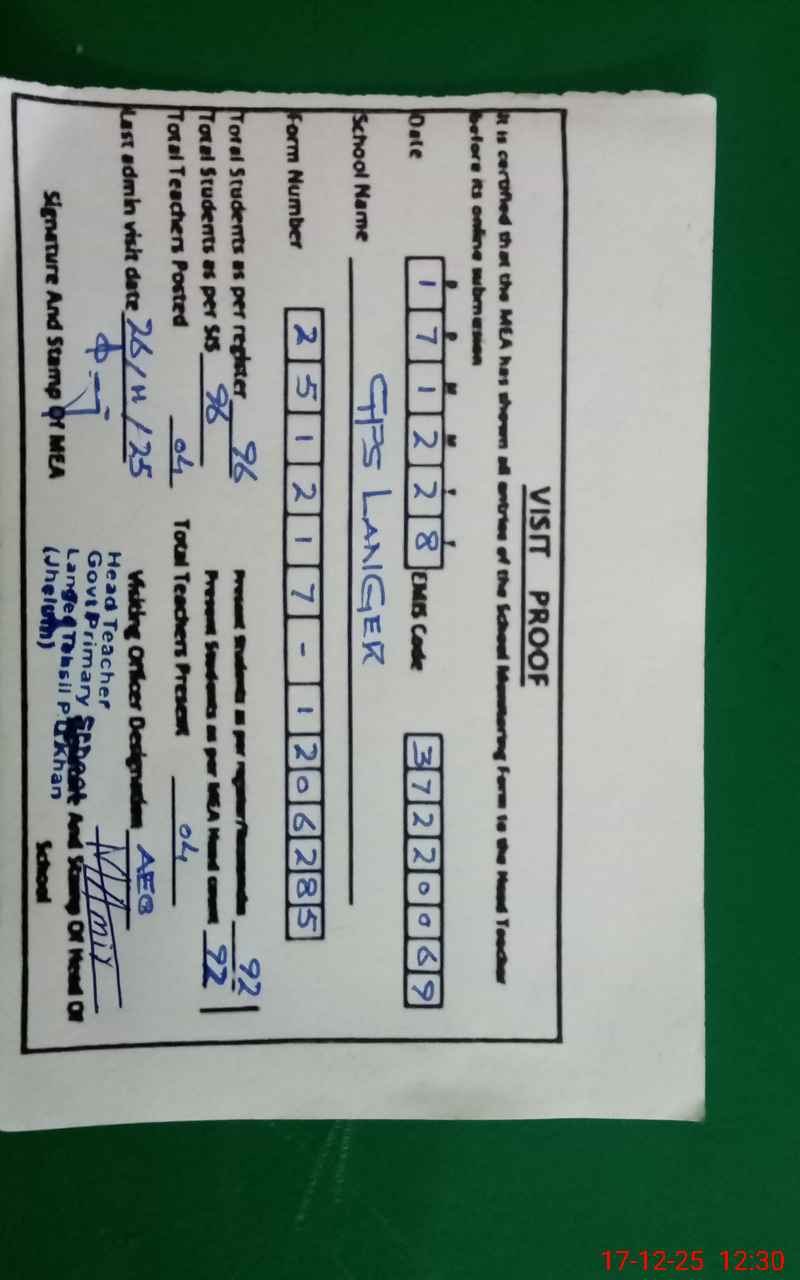 | Attendance Register | Head Teacher | MEA with School | Visit Proof |