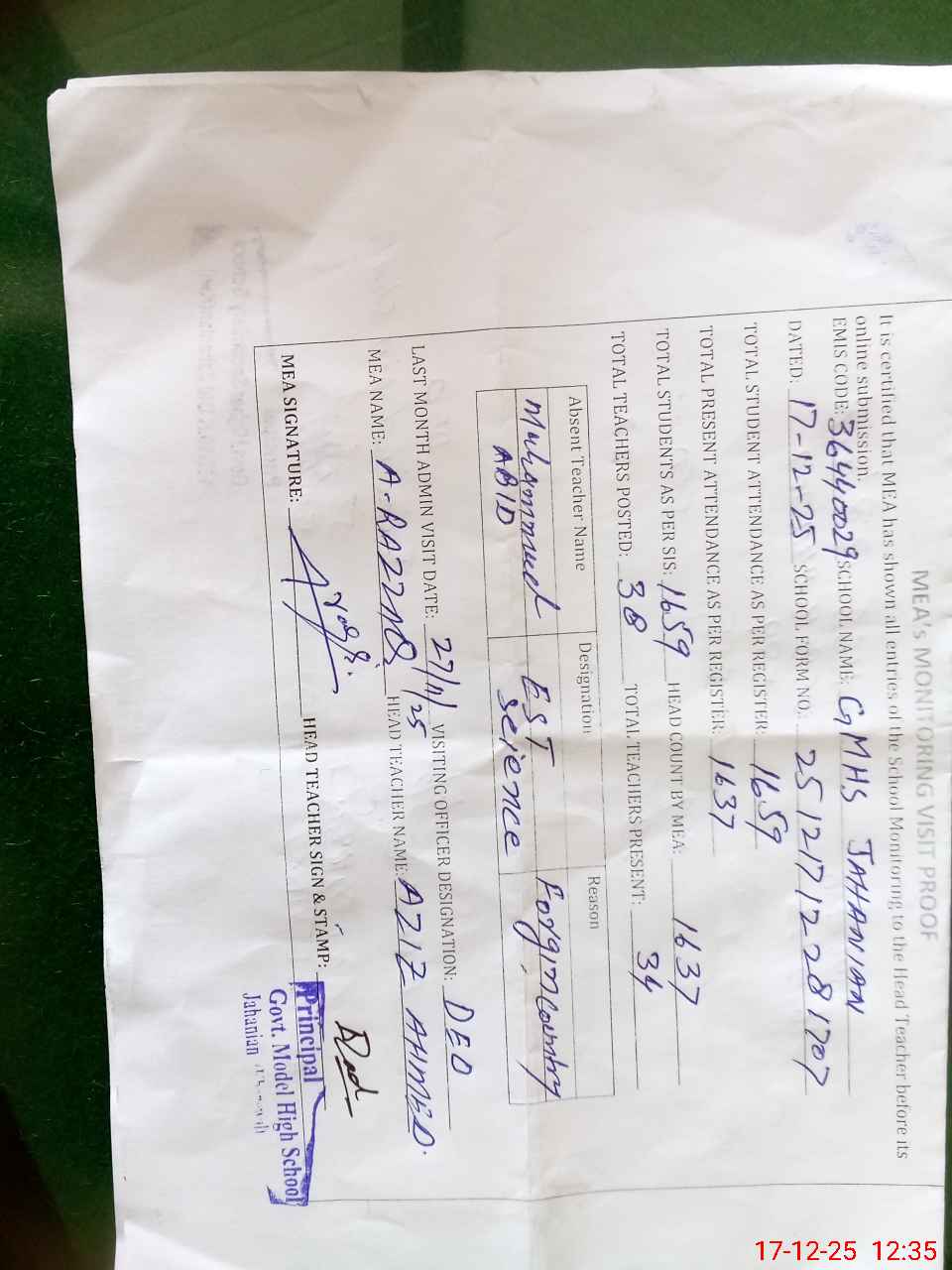 | EMIS Code: 36440029 | Name of School: GMHS JAHANIAN, JAHANIAN | |||