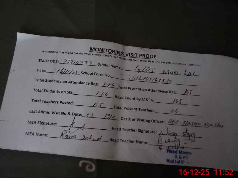 | EMIS Code: 31310339 | Name of School: GGPS MUD LAL | |||