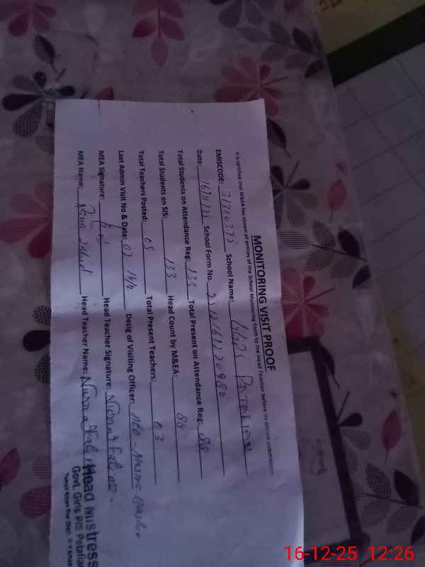 | Name: Nu**** Fa**** Designation: (School Headmaster's/Headmistress's) PST Phone/Cell Number: 03**** |