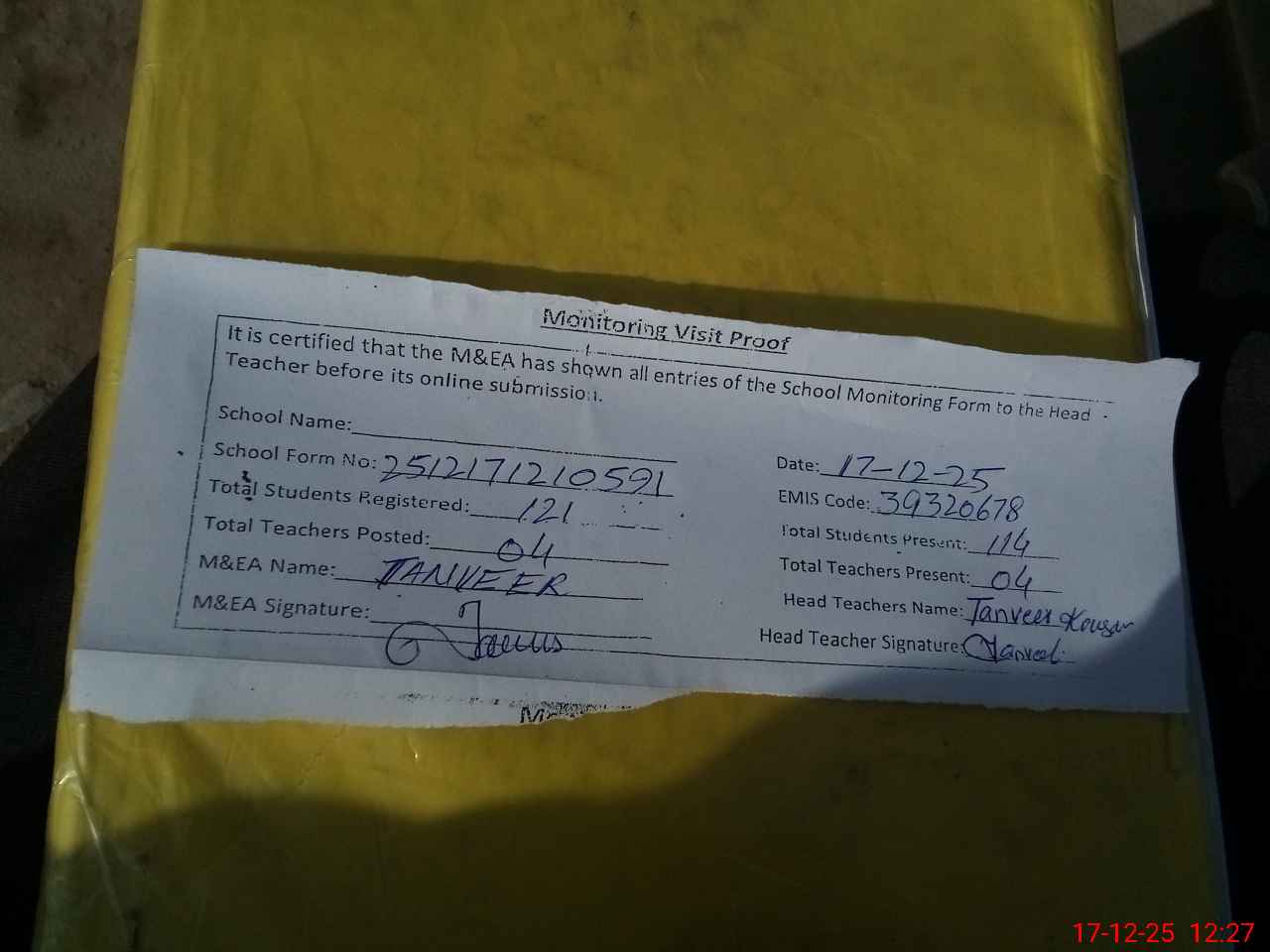 | EMIS Code: 39320678 | Name of School: GGPS DIL BAGH RAI | |||