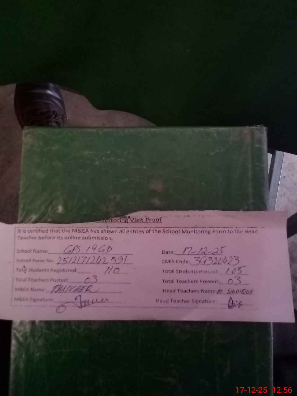 | EMIS Code: 39320423 | Name of School: GPS CHAK NO.19/G.D | |||