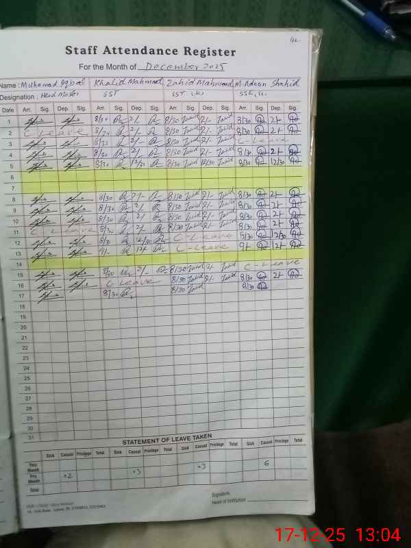 | 31**** | Al**** Hu**** Qa**** | PST Arts | Regular | 0 | 0 | 0 | 0 | 0 | 0 | 0 | 0 | 0 | Casual |