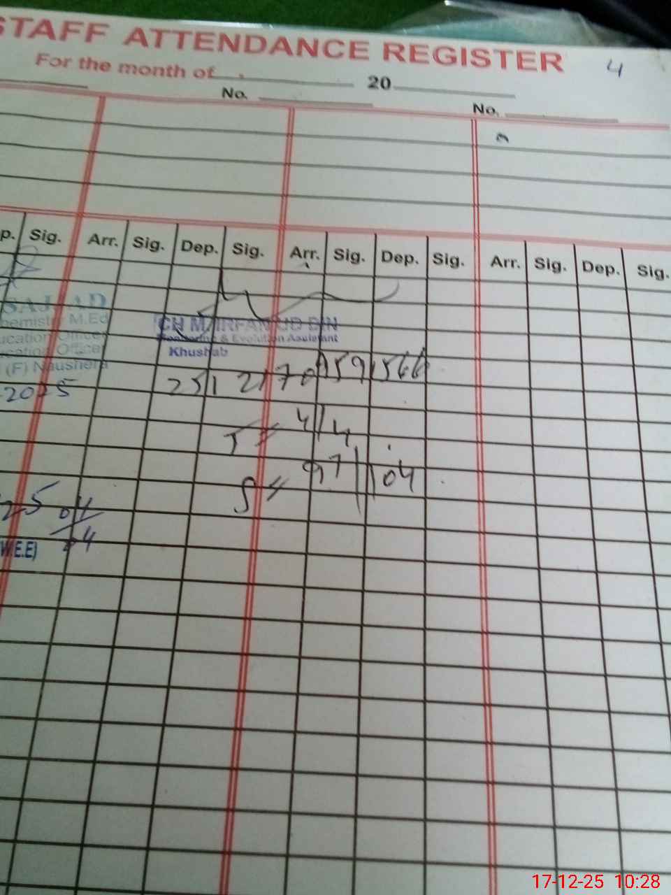| Remarks (Use Separate Page if Required): student on sis 104 student on register 104 head count 97 no teacher absent last visit ddeo 16/12/25 barbed wire missing water issue exists teaching staff required non teachers ng staff required as school located in remort area | |||||