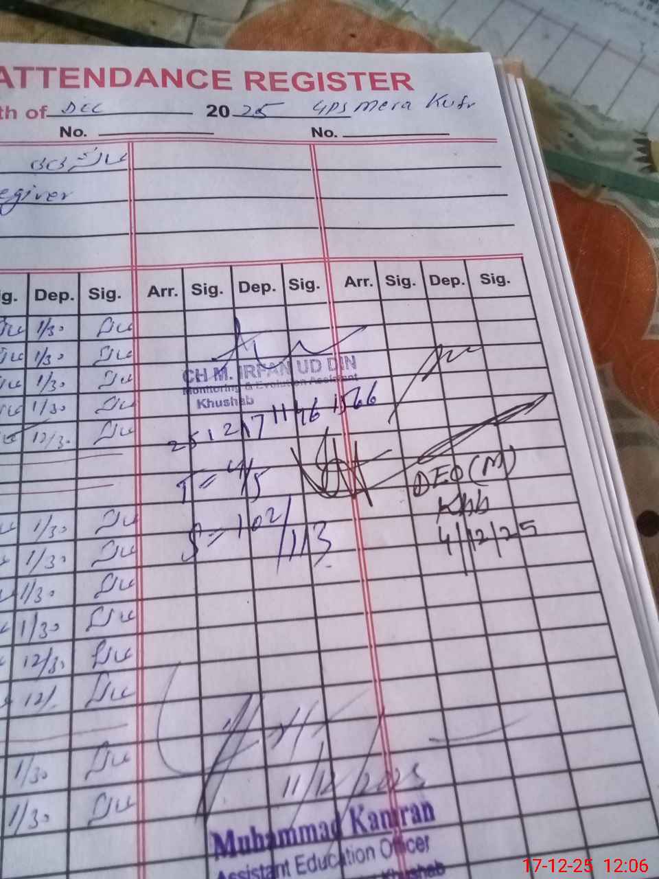 | Attendance Register | Head Teacher | MEA with School | Visit Proof |