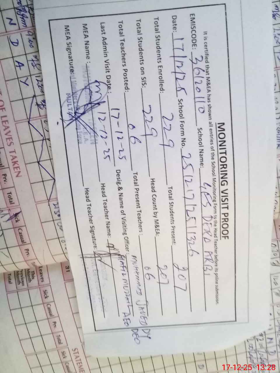 | EMIS Code: 36120110 | Name of School: GES DERA ARBI P/O THATH GHALWAN | |||