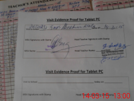 | Attendance Register | Head Teacher | MEA with School | Visit Proof |