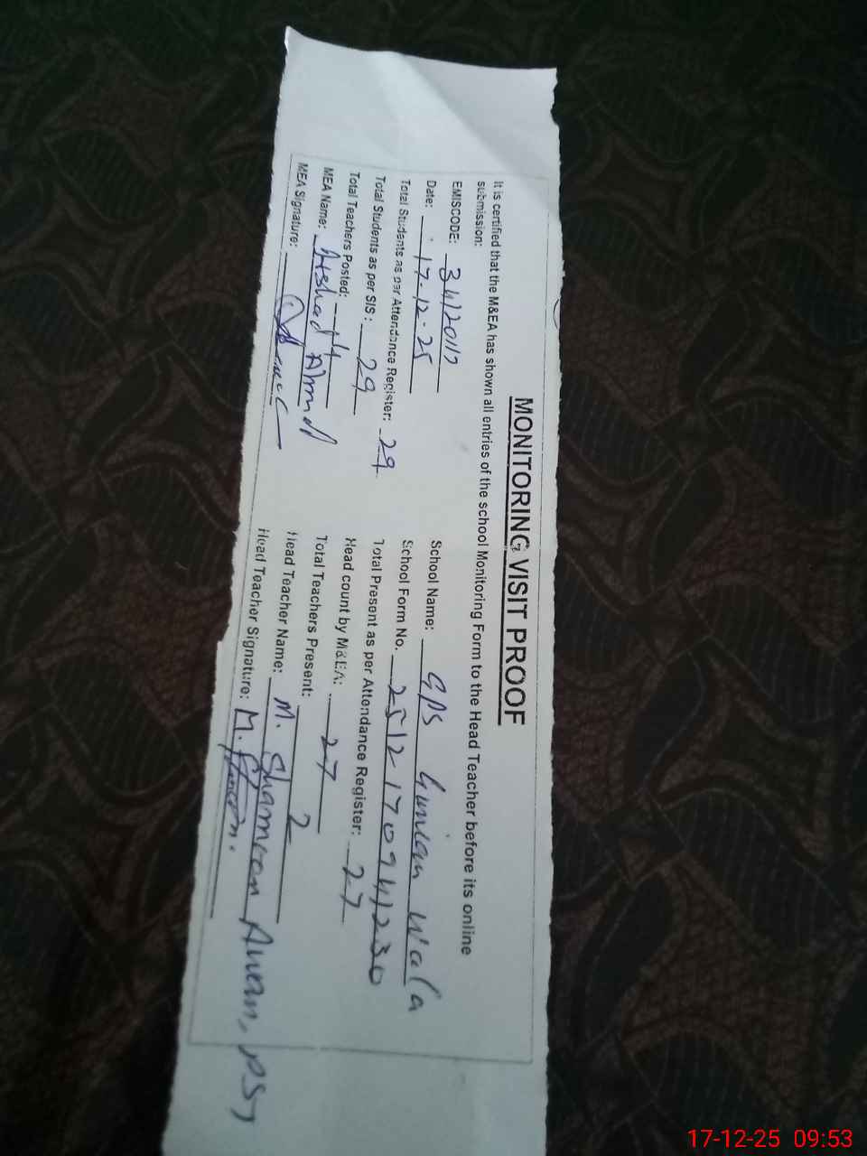 | EMIS Code: 34120117 | Name of School: GPS GUNIAN WALA | |||