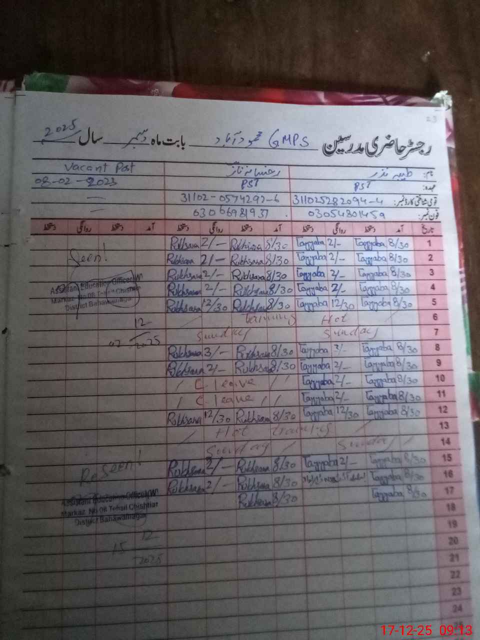 | District: BAHAWALNAGAR | Tehsil: CHISHTIAN | Markaz: CTN -VIII-FEMALE | Level: Primary | |