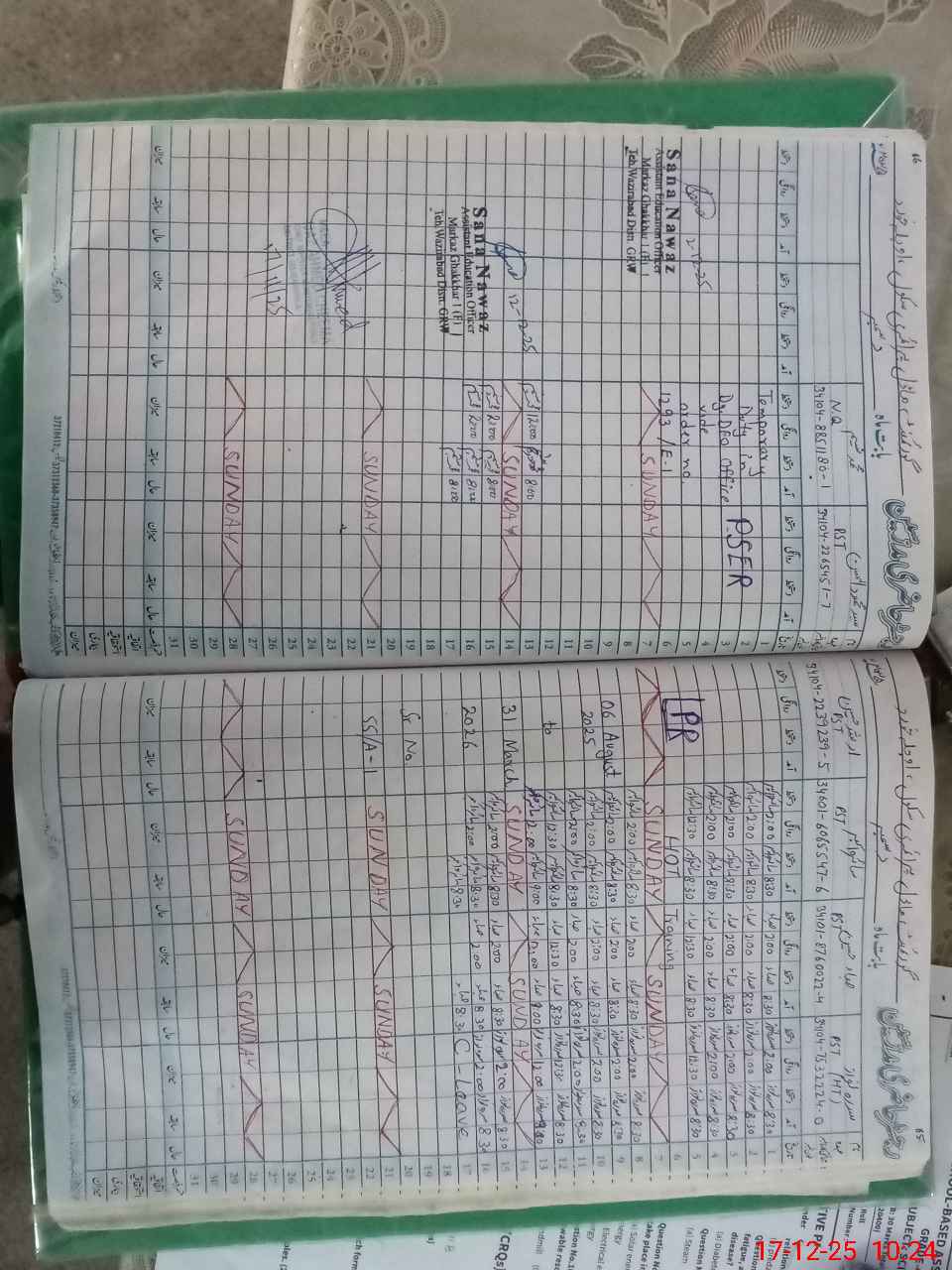 | CNIC | Full Name | Designation | R/C | Absence During Last Calender Month |