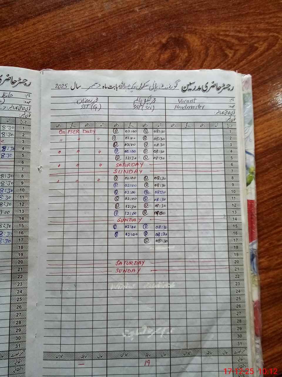 | Name: MU**** SH**** AL**** Designation: (School Headmaster's/Headmistress's) S.S.T.(SCI) Phone/Cell Number: 03**** |