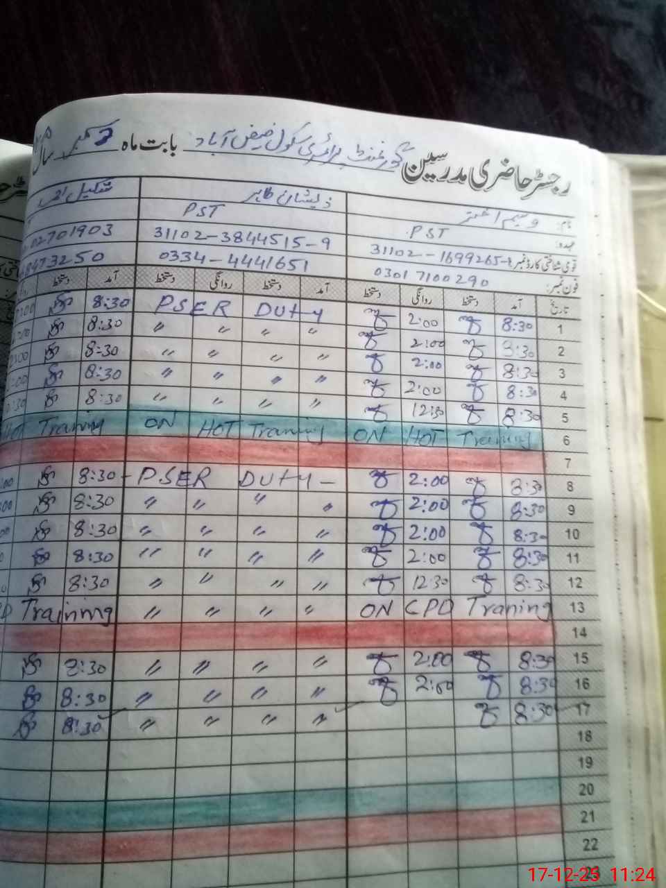 | CNIC | Full Name | Designation | R/C | Absence During Last Calender Month |