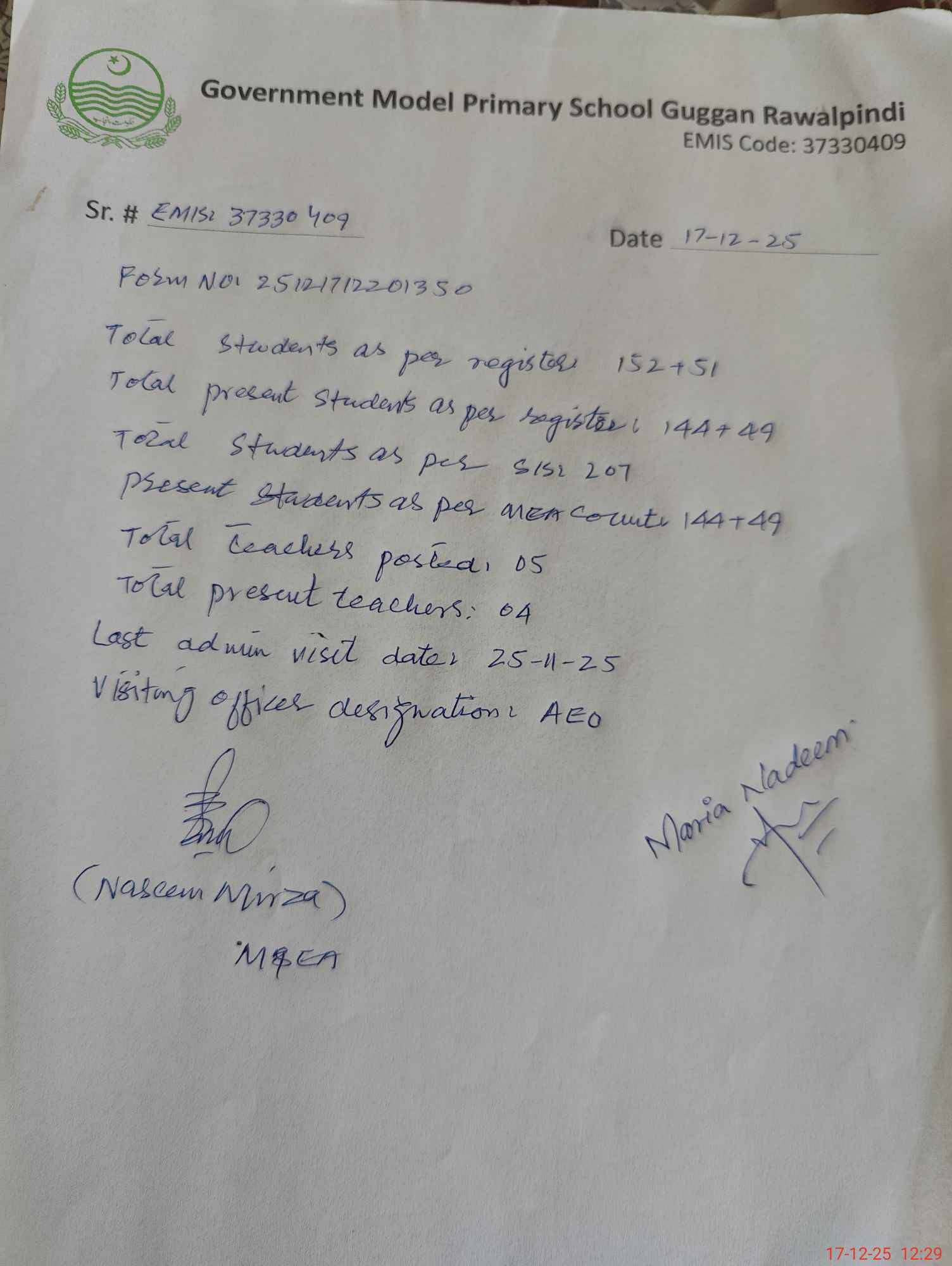 | EMIS Code: 37330409 | Name of School: GMPS GUGAN | |||