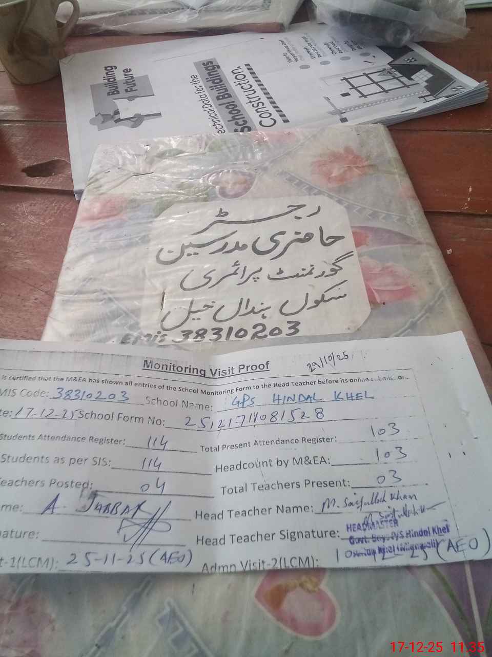 | EMIS Code: 38310203 | Name of School: GPS HINDAL KHEL | |||