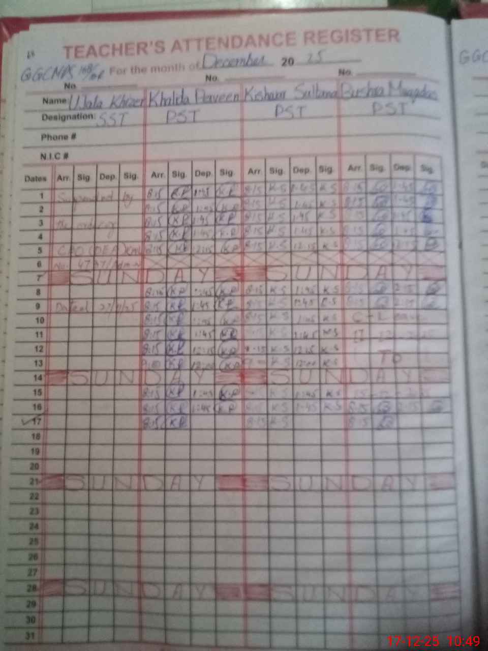 | Name: UJ**** KH**** Designation: (School Headmaster's/Headmistress's) S.S.T.(G) Phone/Cell Number: 03**** |