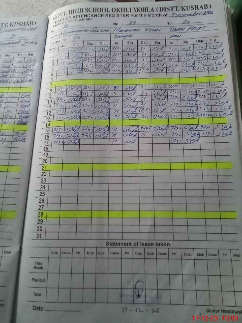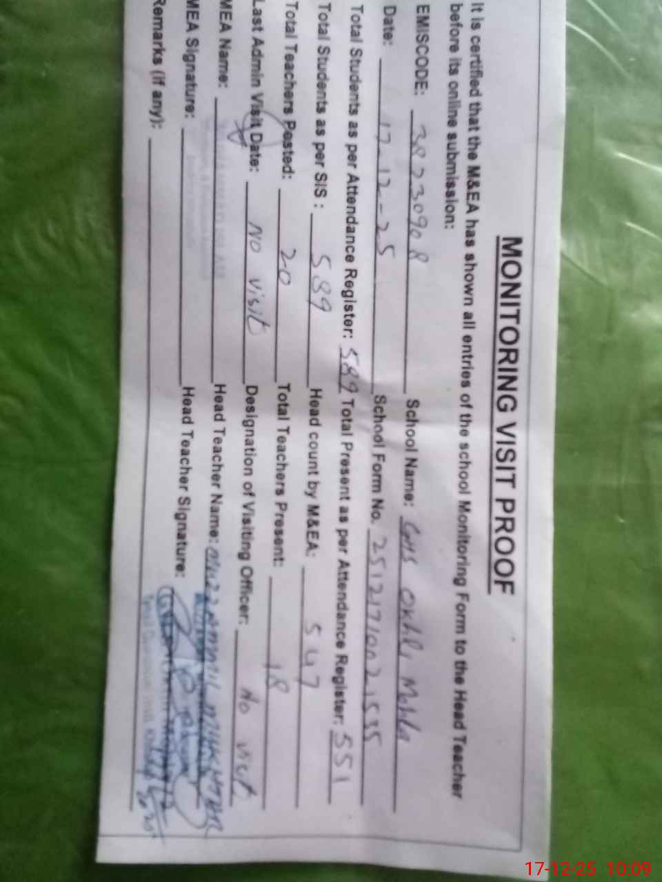 | EMIS Code: 38230908 | Name of School: GHS OKHLI MOHLA | |||