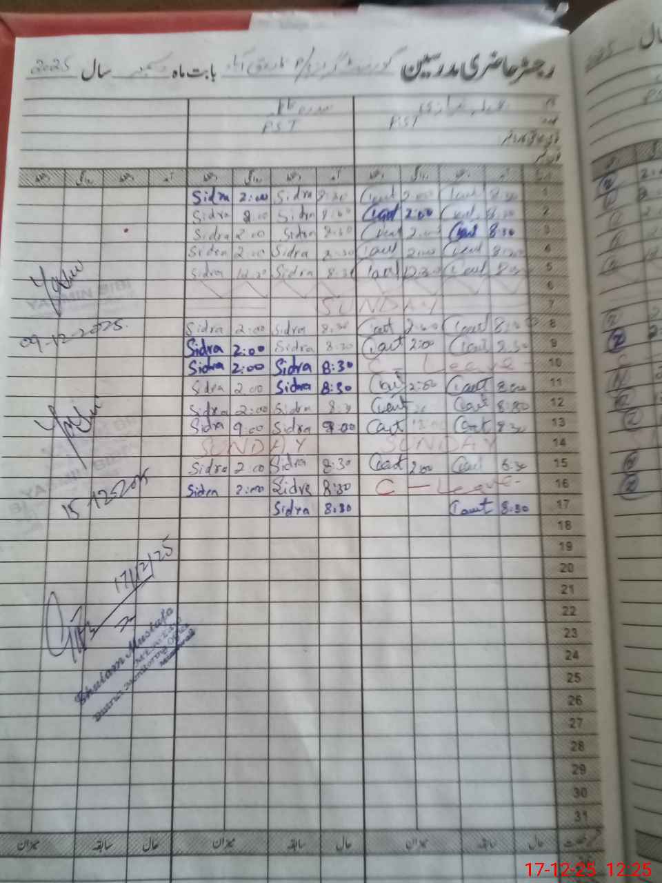 | CNIC | Full Name | Designation | R/C | Absence During Last Calender Month |