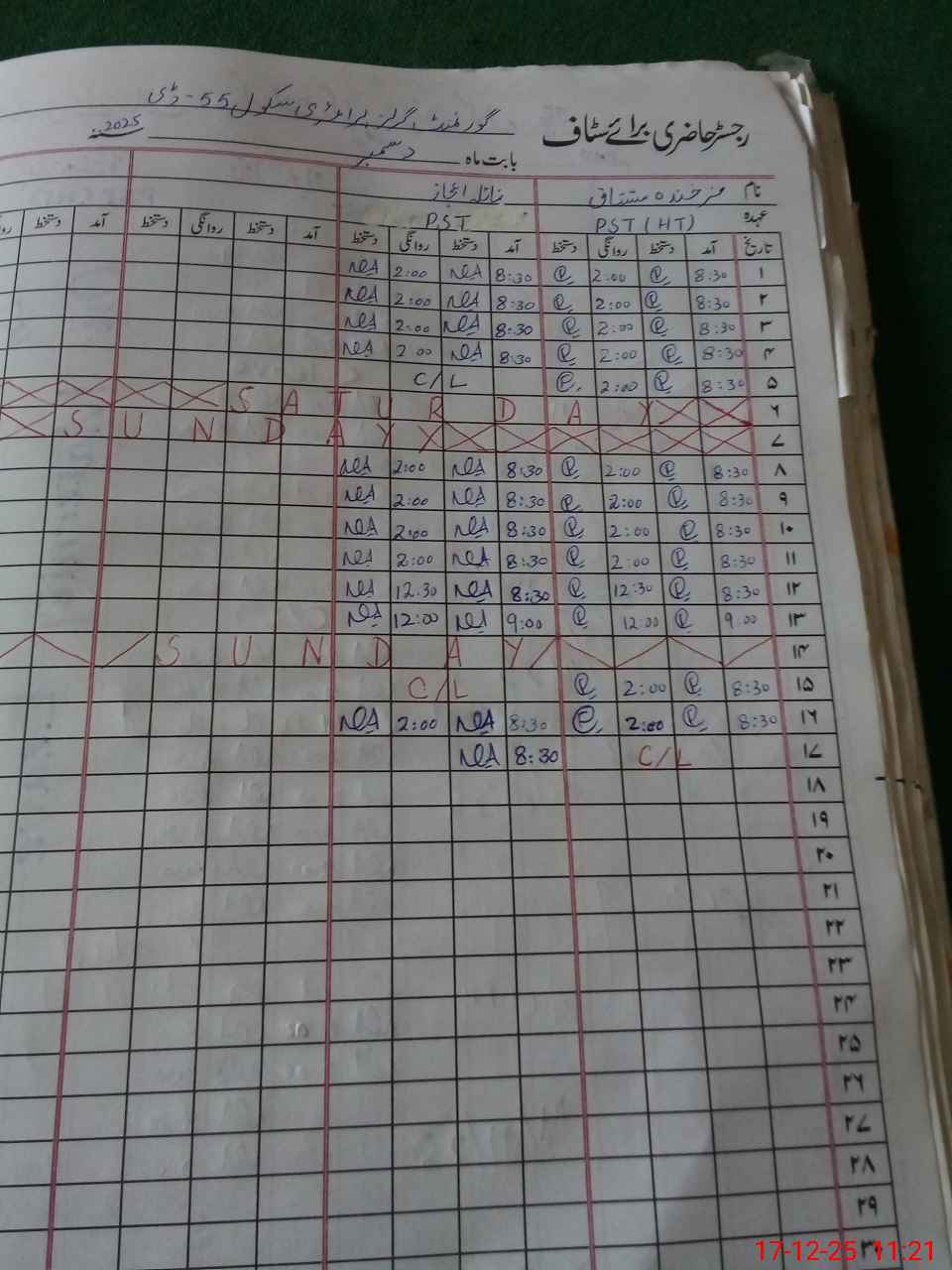 | CNIC | Full Name | Designation | R/C | Absence During Last Calender Month |