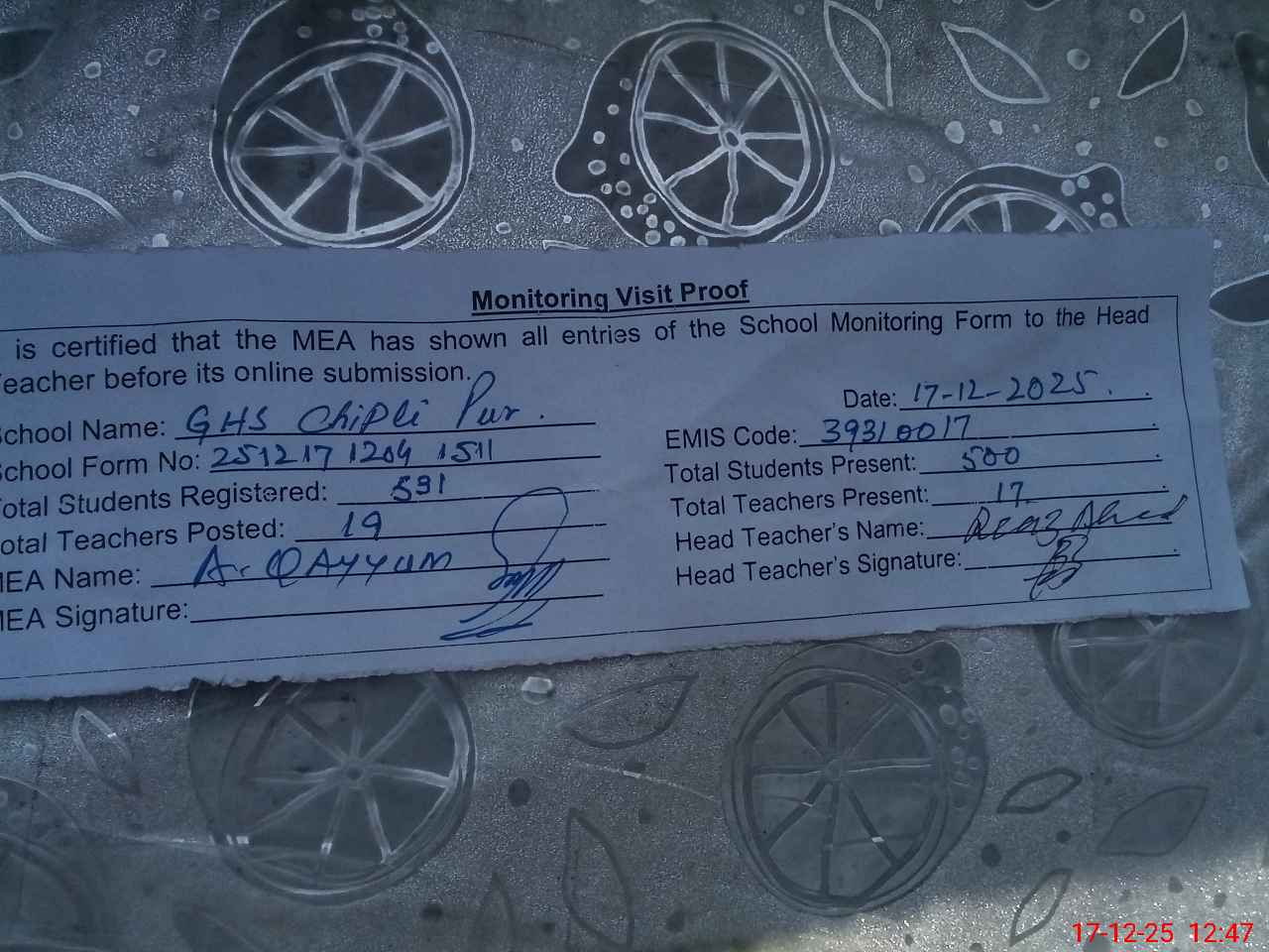 | EMIS Code: 39310017 | Name of School: GHS CHIPLI PUR | |||